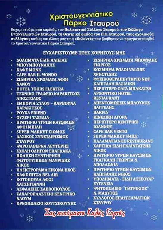 ΠΡΟΓΡΑΜΜΑ ΕΚΔΗΛΩΣΕΩΝ ΧΡΙΣΤΟΥΓΕΝΝΙΑΤΙΚΟΥ ΠΑΡΚΟΥ ΣΤΑΥΡΟΥ