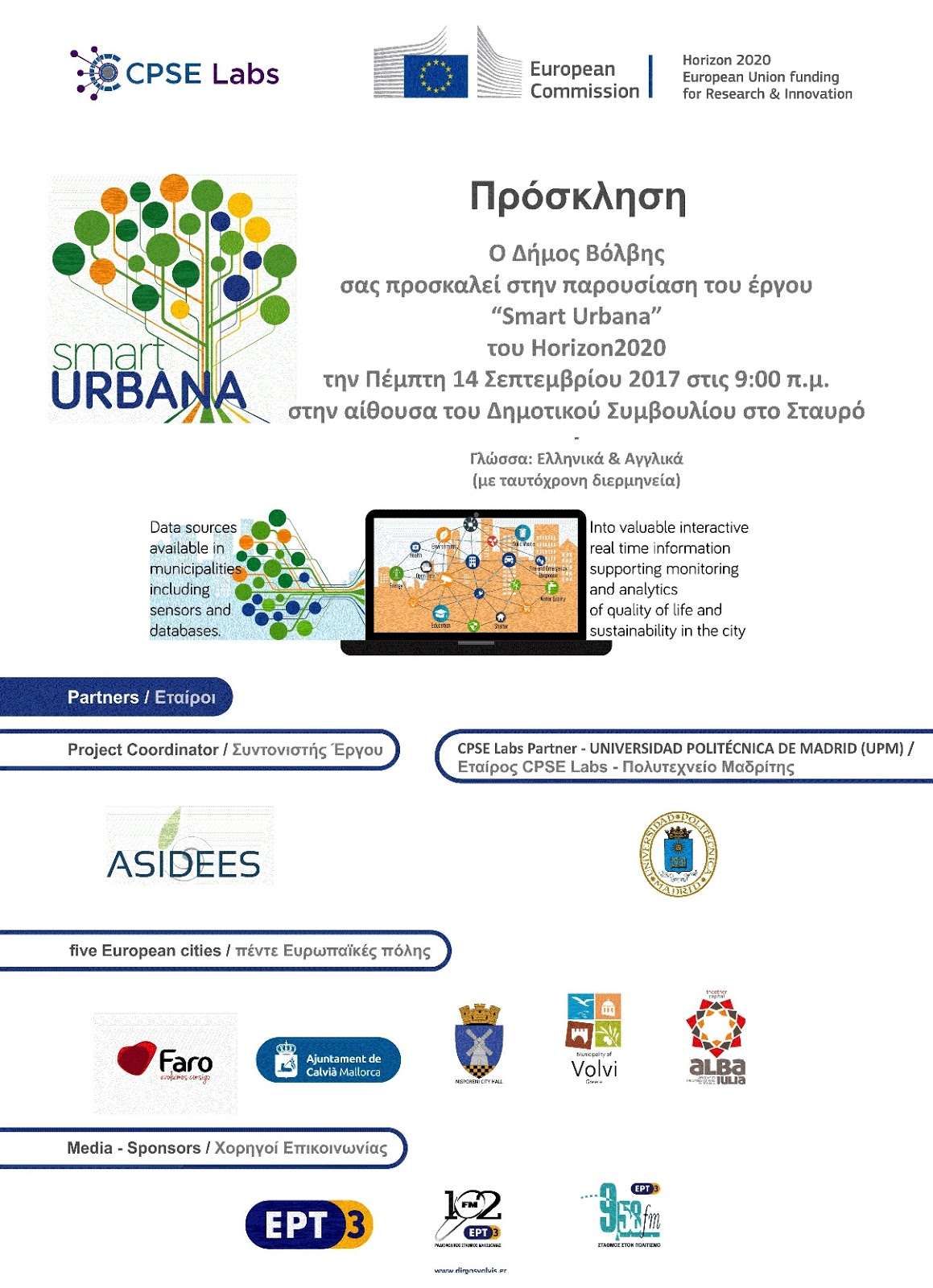 Διημερίδα παρουσίασης του ευρωπαϊκού προγράμματος “Smart Urbana” διεξάγεται 14 και 15 Σεπτεμβρίου 2017 στην αίθουσα Δημοτικού Συμβουλίου